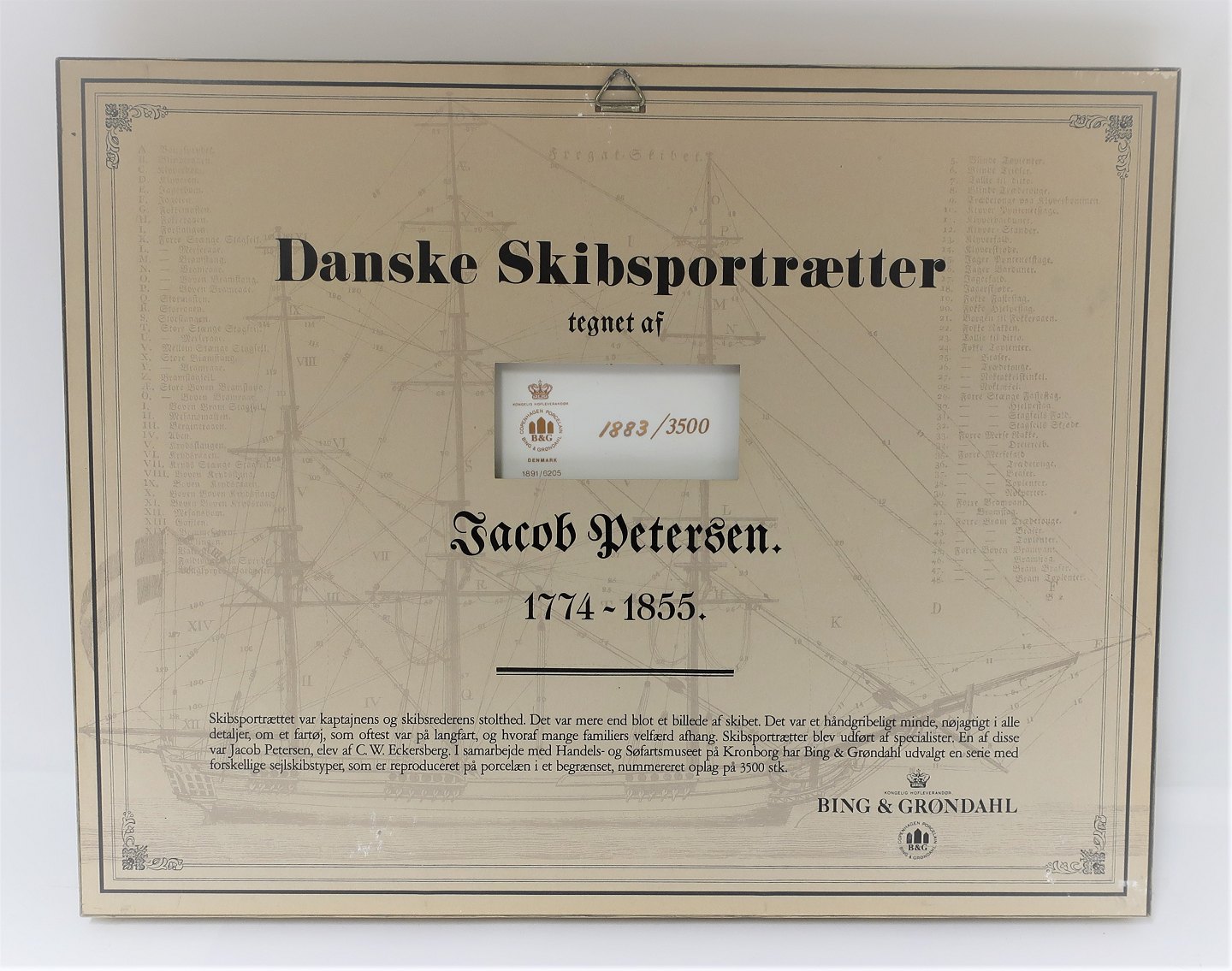 Bing & Grondahl. Porcelain. Danish ship portraits. Image of the frigate "Frederick the Siette". Dimensions: Width 38 * 30 cm. 3500 have been produced and this number is 1883.