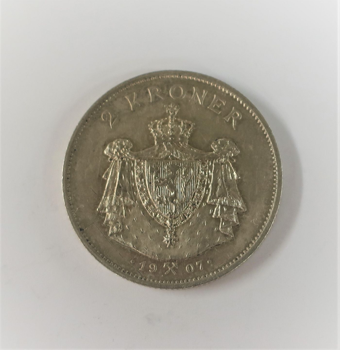 Norwegen. Silber Jubiläumskrone 2 von 1907. Durchmesser 31 mm