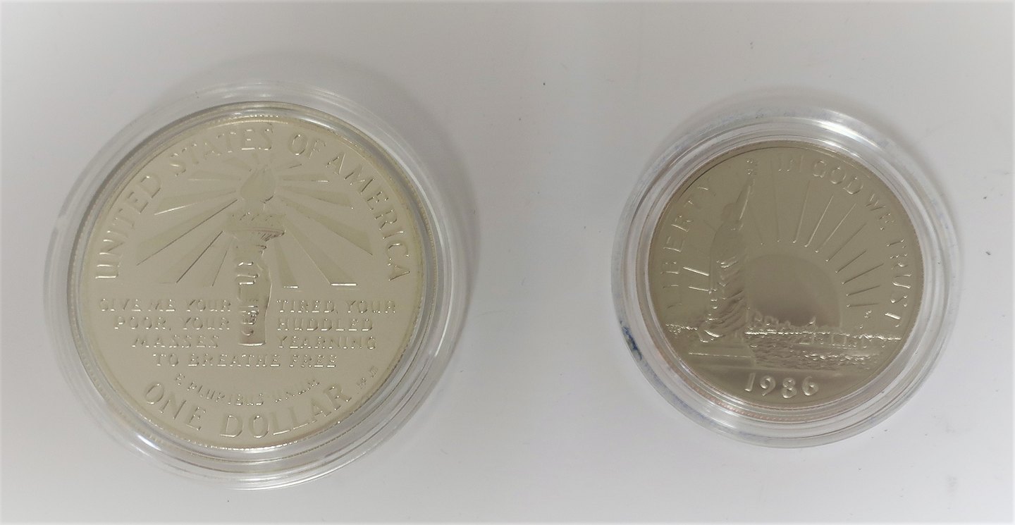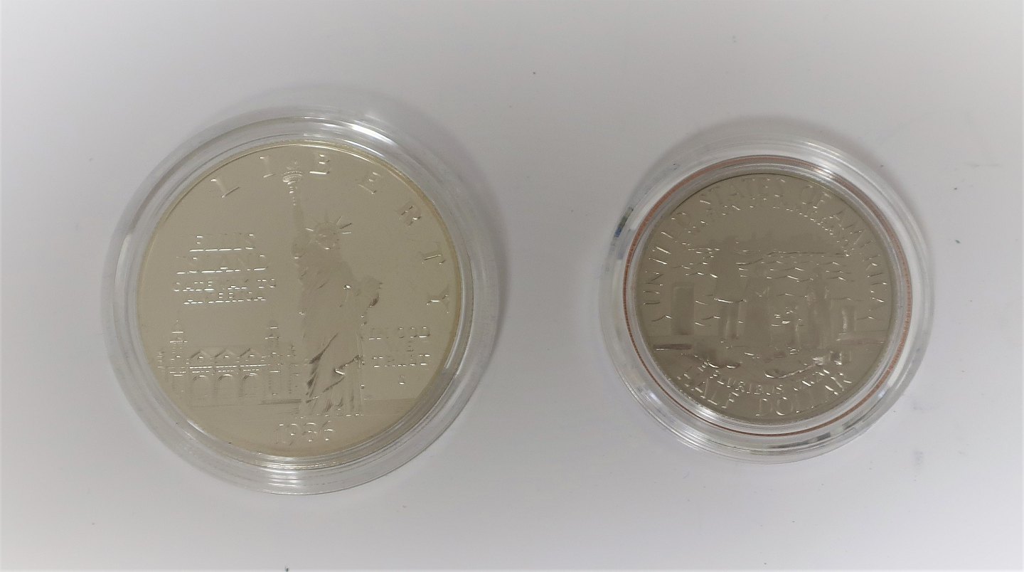 USA. Liberty coins 1886 - 1986. $ 1 from 1986 in silver and $ ½ in copper-nickel