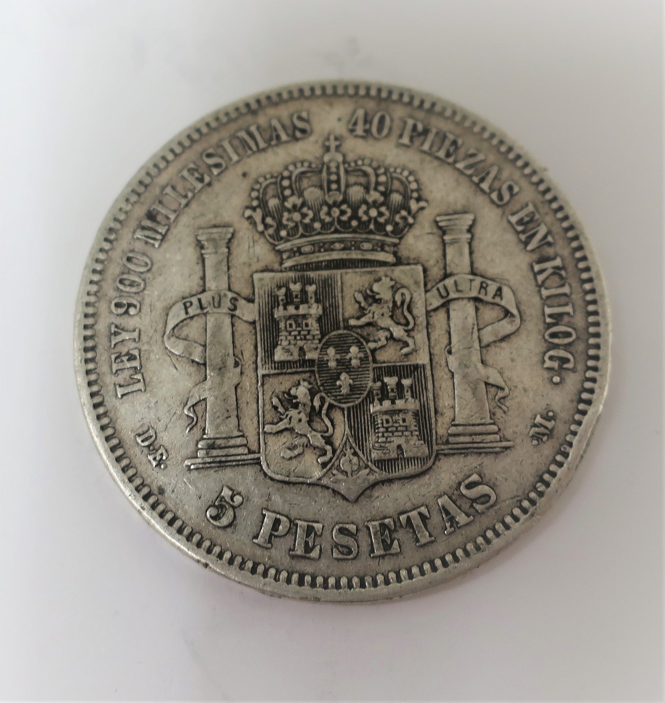 Spain. Silver 5 Pesetas 1876. Diameter 38 mm.