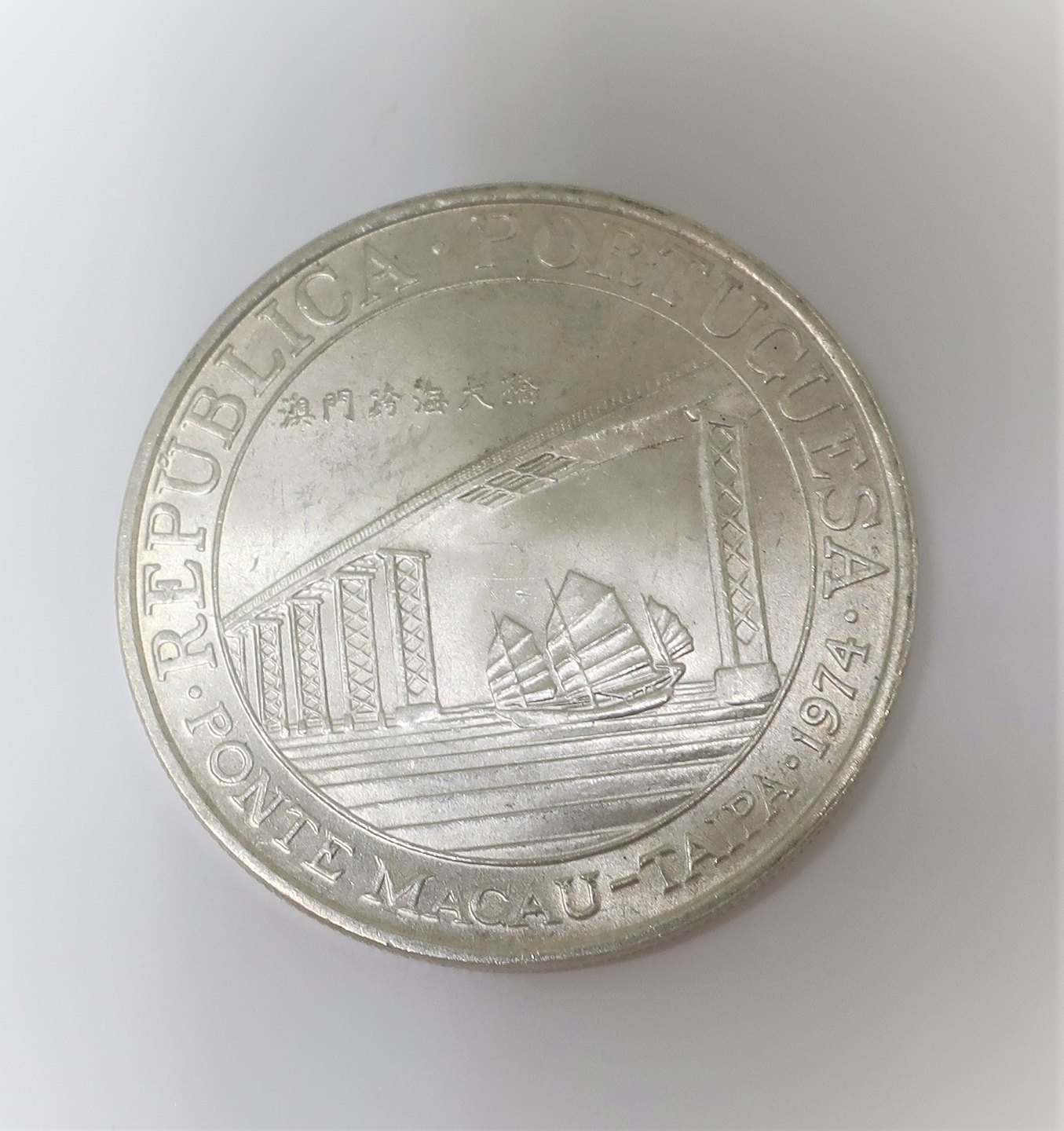 Macau. Silver 20 Patacas from 1974. Diameter 35 mm