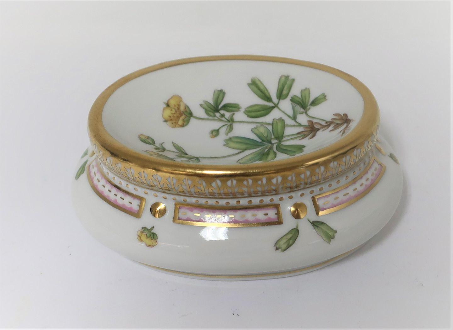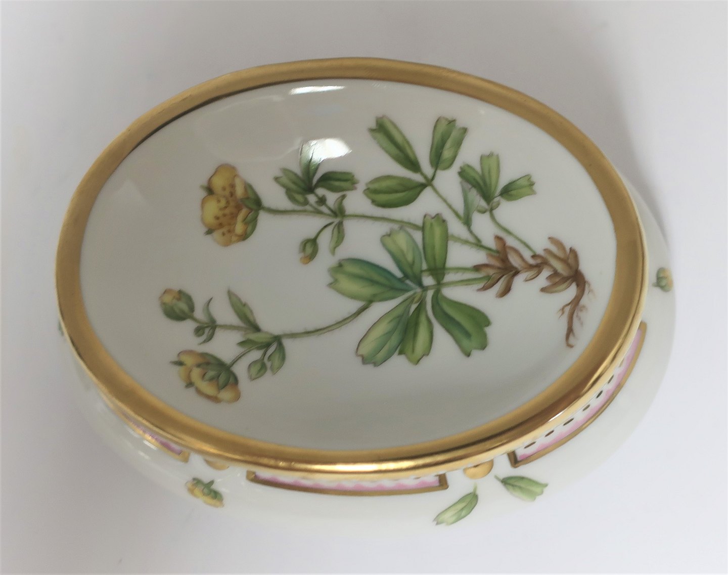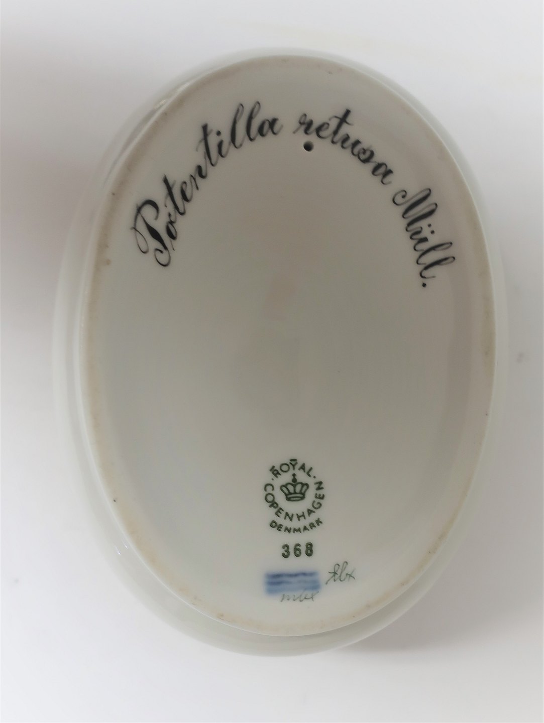 Königliches Kopenhagen. Flora Danica. Salzgefäß / Briefgewicht. Modell 368 (3625). Länge 11cm. (1 Wahl) Potentilla retusa Müll