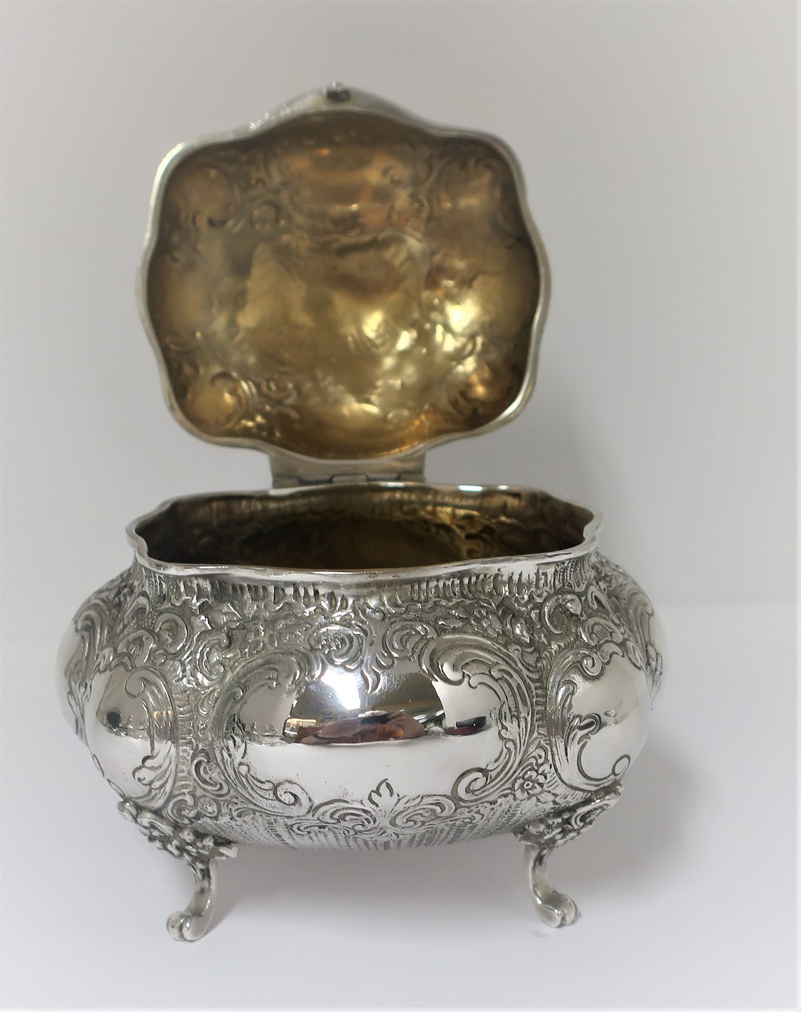 Silver bonbonniere (800). Length 12 cm. Height 11 cm. Gilded inside.
