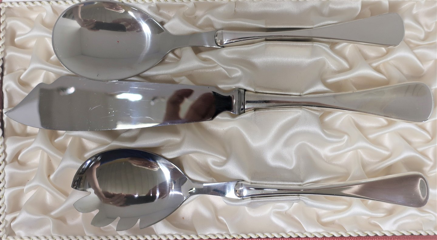 Patricia. Silver cutlery (830). Box with cake knife and salad set.