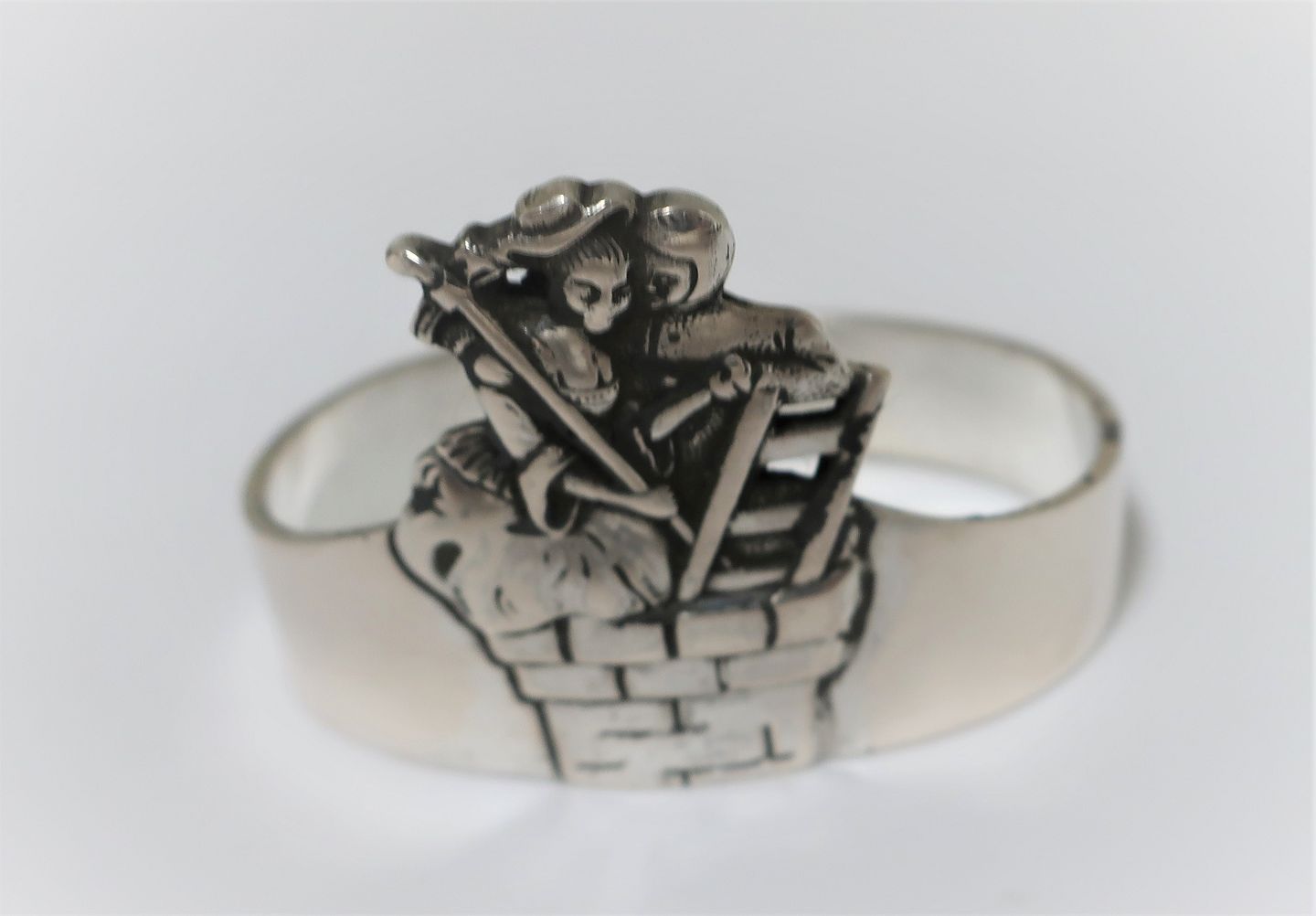 Silver napkin ring (830). HC Andersen fairytale. Shepherdess and the Chimney Sweep