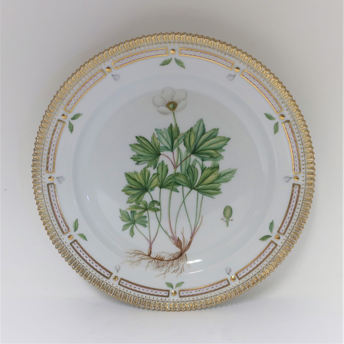 Royal Copenhagen. Flora Danica. Round dish. Model # 376 (3523). Diameter 30 cm. (1 quality). Anemone silvestris L