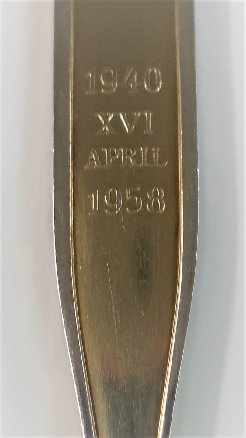 Michelsen. Memorial spoon 1958. Princess Margrethe's 18th Birthday April 16, 1958. Sterling (925). Design Carsten Frølich
