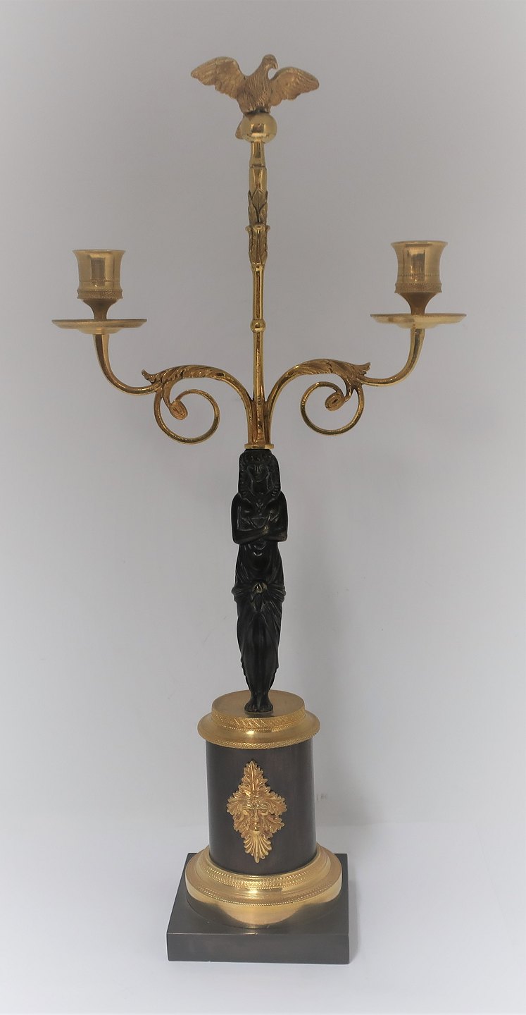 Empire bronze Candlesticks. Probably French about 1810. A pair. Height 48 cm.