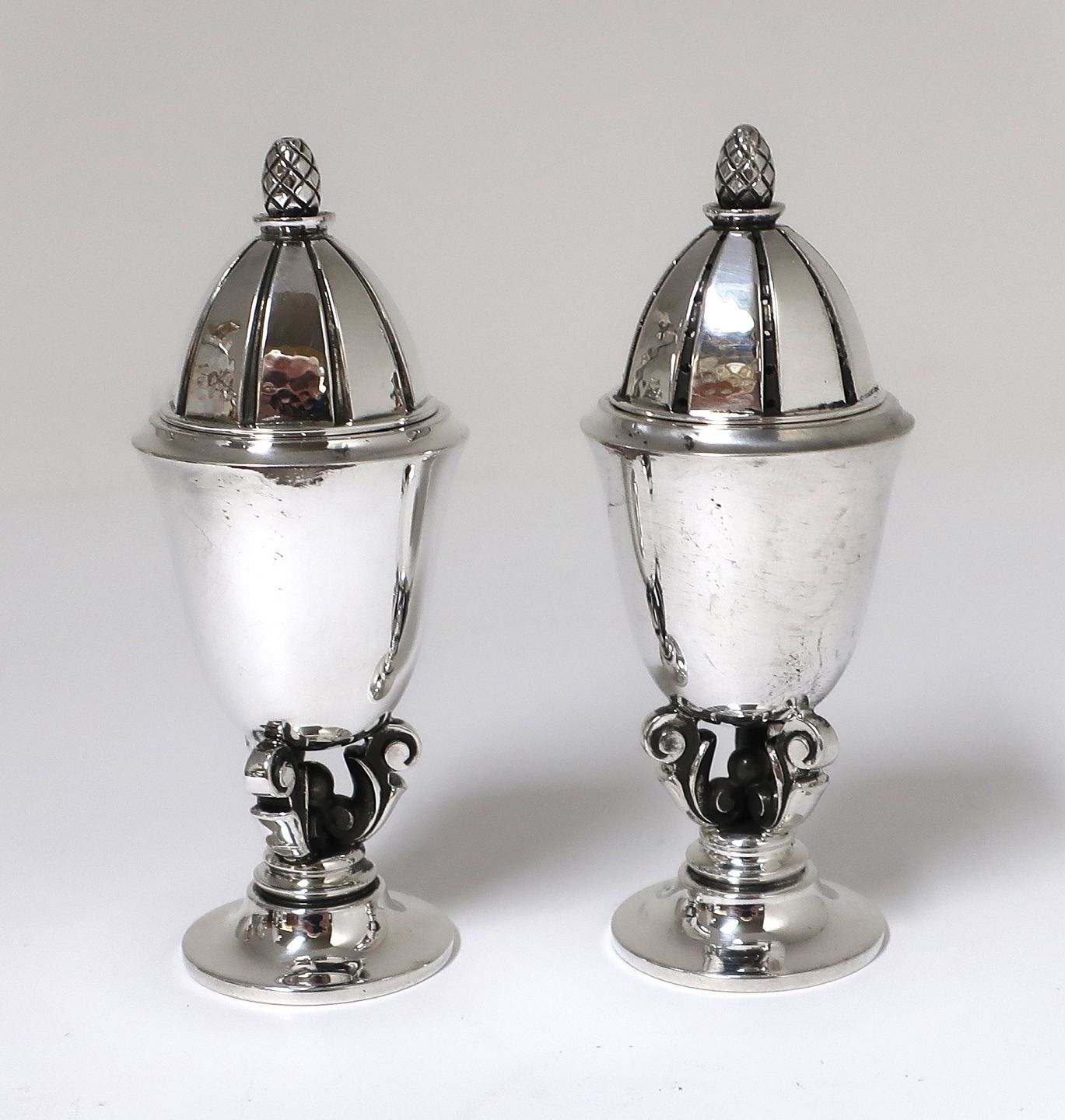 Georg Jensen. Salz- und Pfefferstreuer. König. Entwurf Johan Rohde. Modell 741. Höhe 9 cm.