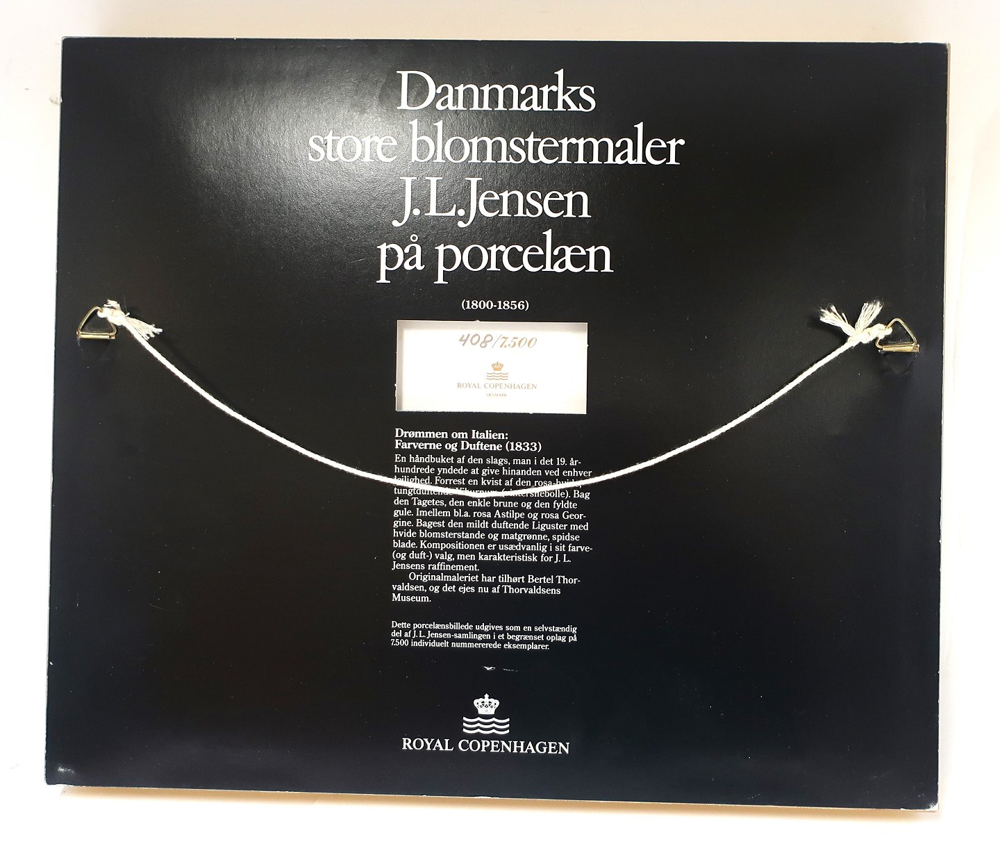 Bing & Grondahl. Porcelain painting. Design by J.L. Jensen. The colors and the scents (1833). Size including frame, 40 * 34 cm. Produced 7500 pieces. This has number 408