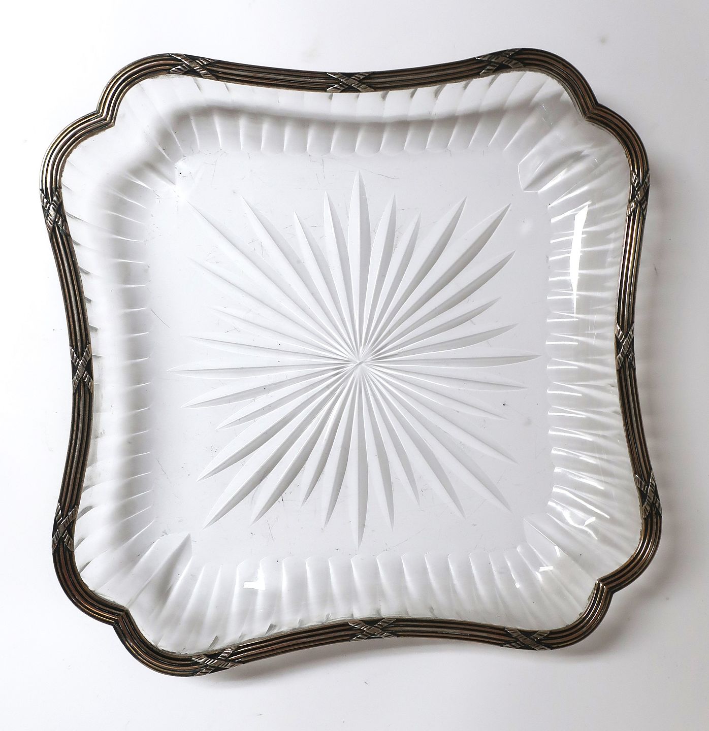 Boin taburet a paris. Firkantet krystalskål med sølvkant. Mål 19*19 cm.