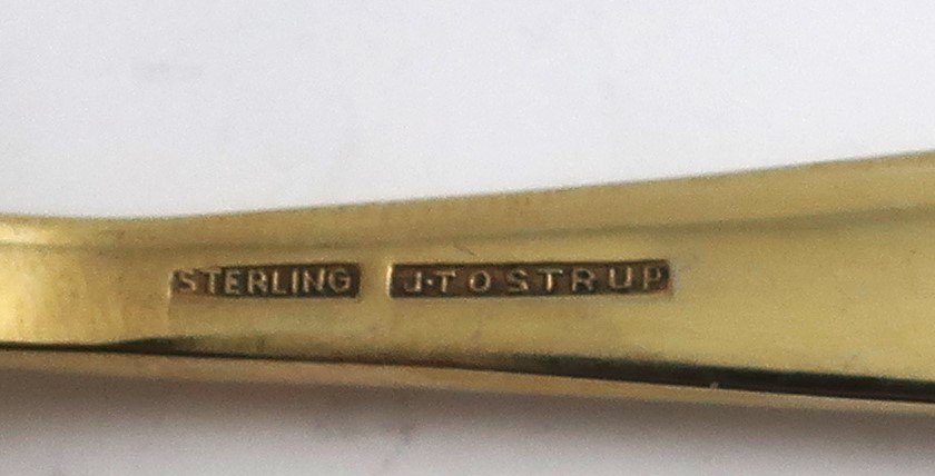 J. Tostrup, Norway. Sterling children's spoon gilded with white enamel. Length 15.3 cm.