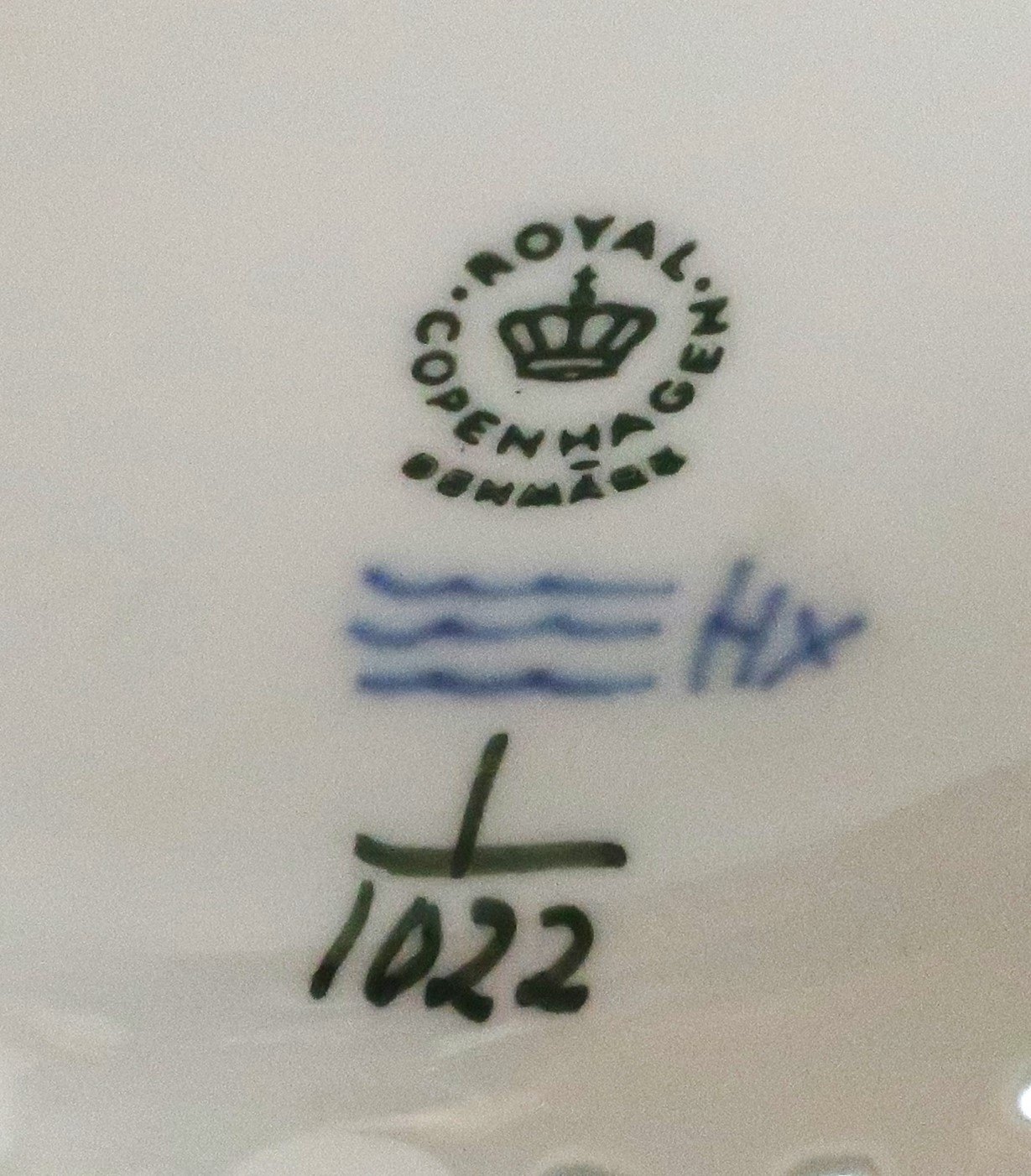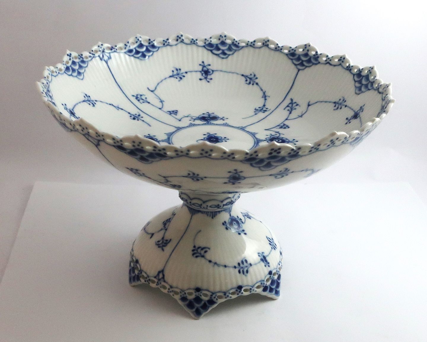 Königliches Kopenhagen. Musselmalet, Vollspitze. Große Obstschale auf Fuß. Modell 1022. Höhe 17,5 cm. Durchmesser 28 cm. (1 Wahl)