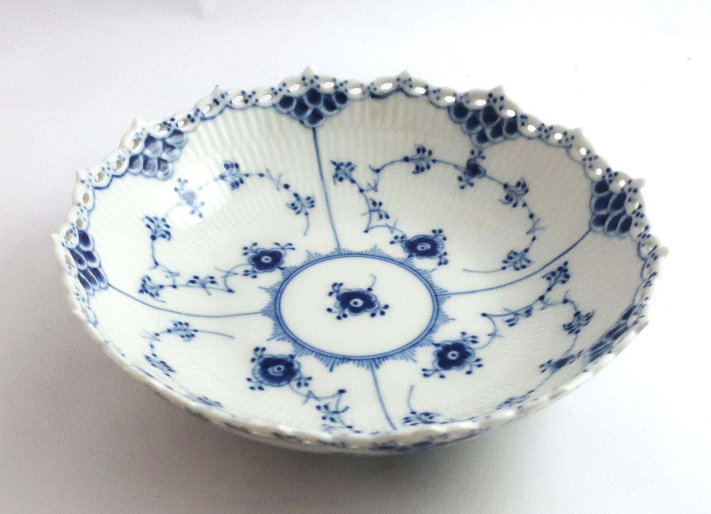 Königliches Kopenhagen. Musselmalet Vollspitze. Runde Schüssel. Modell 1018. Höhe 6 cm. Durchmesser 21 cm. (1 Wahl)
