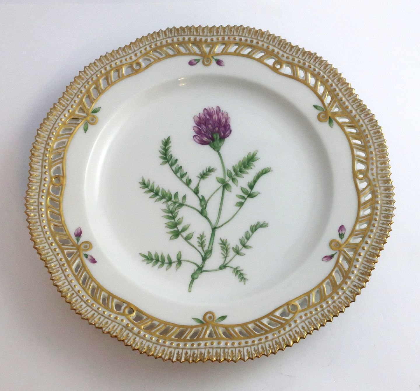 Royal Copenhagen Flora Danica. Lunch plate with open-work border. Design # 3554. Diameter 23 cm. (1 quality). Astragalus danicus Retz