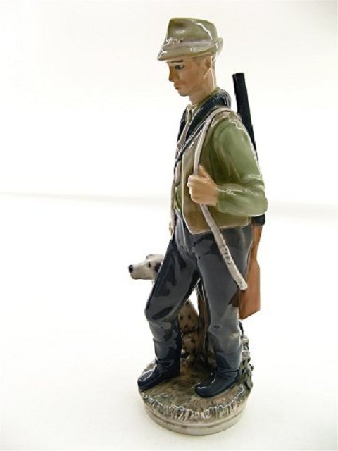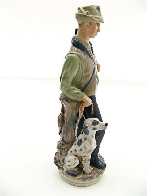 Dahl Jensen jæger med hund 1373 1. sort. men med revne ved hals.
