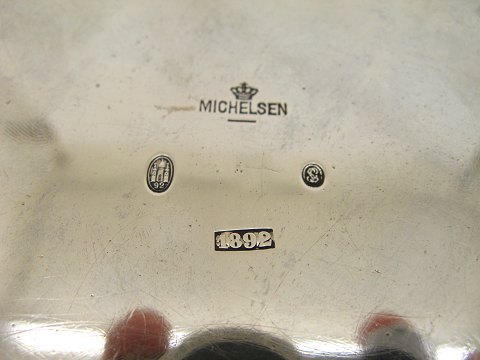 A 19th century Silver dish with handle Michelsen 1892 Kgl. hof og ordens juveler i København dia. 23,5 cm.