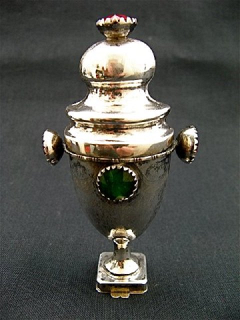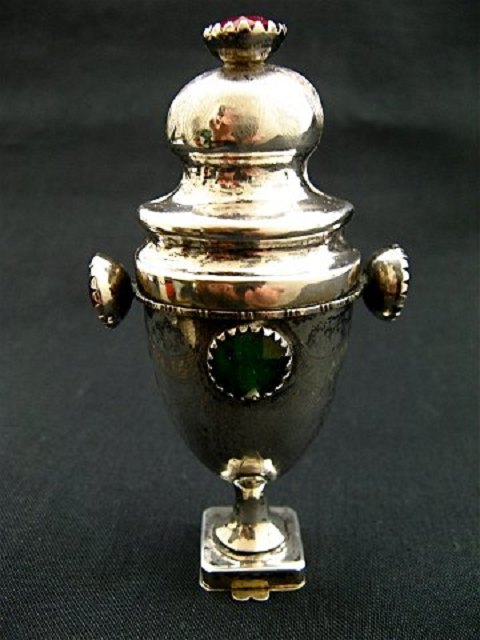 1800-tals vaseformet hovedvandsæg med glasflüsser mester August Friedrich Krollpfeifer Haderslev graveret med initialer og 1857