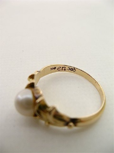 14 karat Evald Nielsen guld ring med ægte perle og original etui størrelse 53