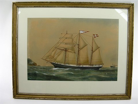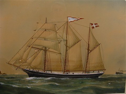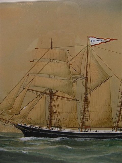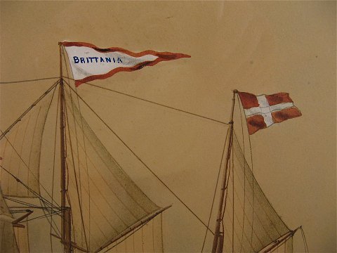 Reuben Chappell 1870-1940 skibsportræt af den tremastede skonnert "Brittania" lysmål 35x51 cm. (68x54)