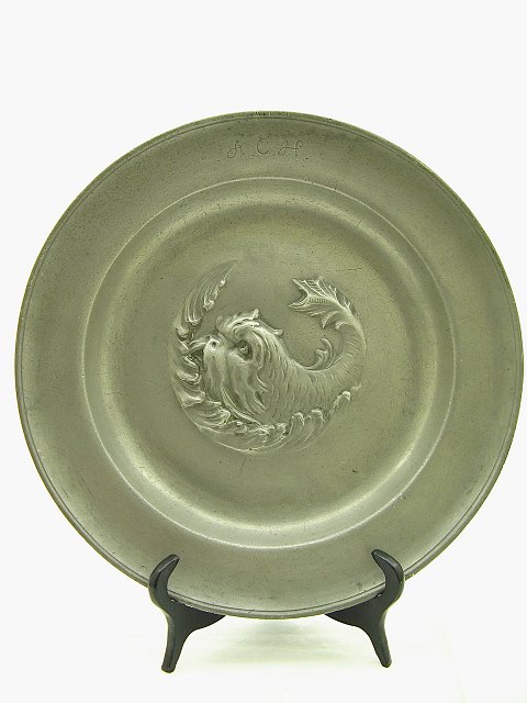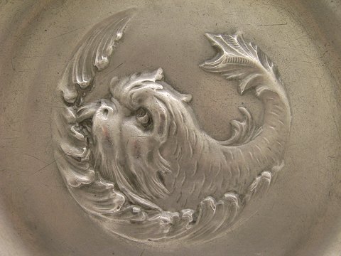 1800-tals tin fad med motiv af fisk dia. 34,5 cm.