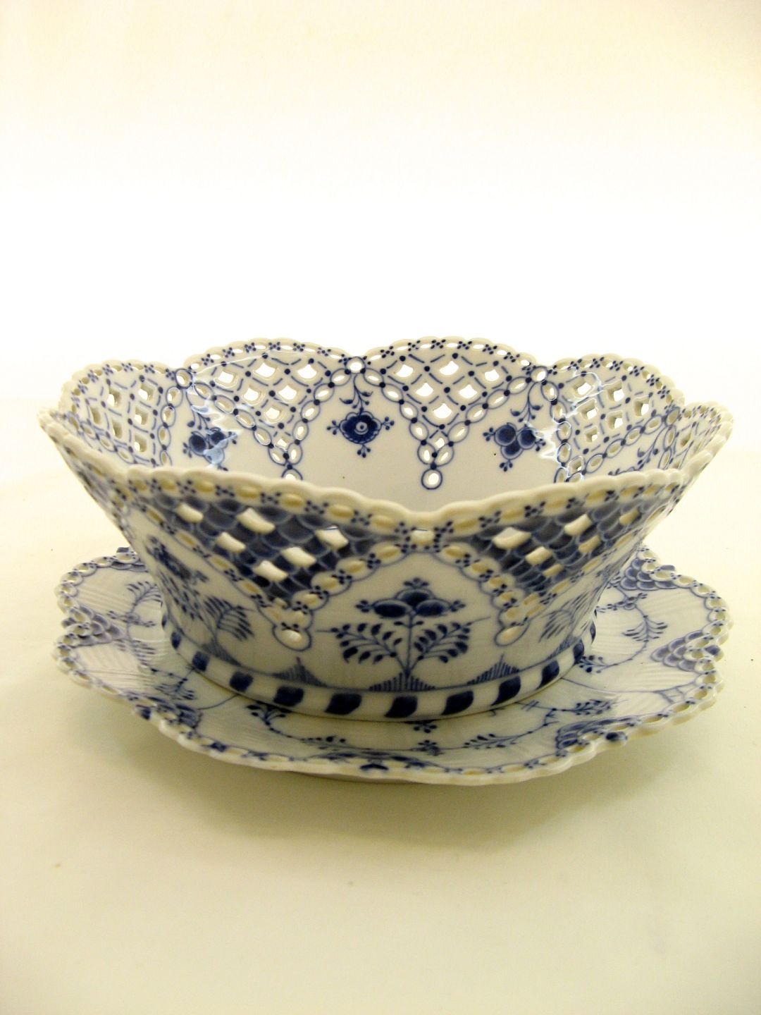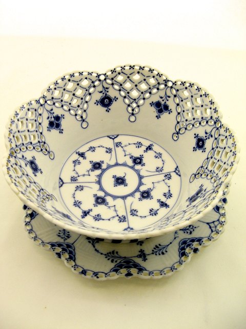 Royal Copenhagen musselmalet helblonde frugtskål med underfad 1061-1062 1.sort. # 204981
