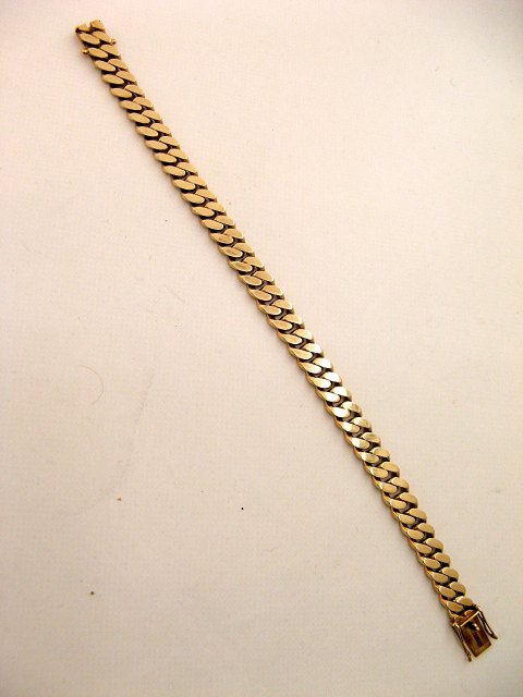 14 karat panser armlænke stemplet 585 VP for guldsmed Viggo Petersen København L.18,5 cm. B. 0,8 cm. 32 gram emne