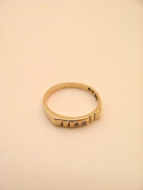 14 karat guld ring størrelse 54-55 med 2 små diamanter fra Juveler Børge Knudsen Odense Nr. 225537