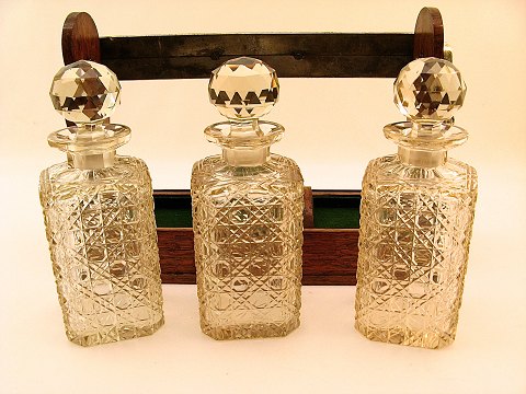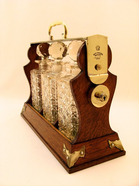 Engelsk tantalus fra slutningen af 1800-tallet i egetræs kasse med tre karafler Nr 226263