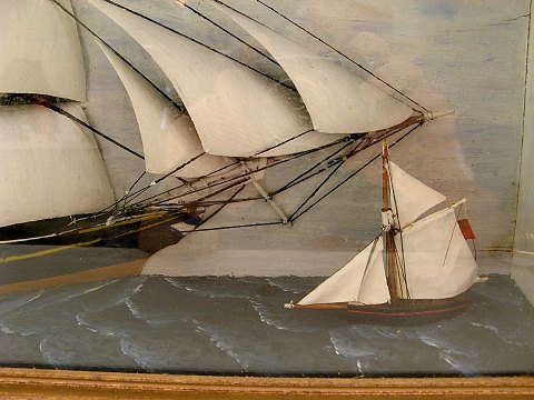 1800 Century ship in wooden box 62 x 45 cm. No. 239017