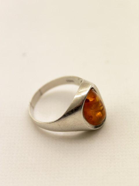 Silversmith Einer Fehrn Copenhagen sterling silver ring size 61-62 with amber No. 257353