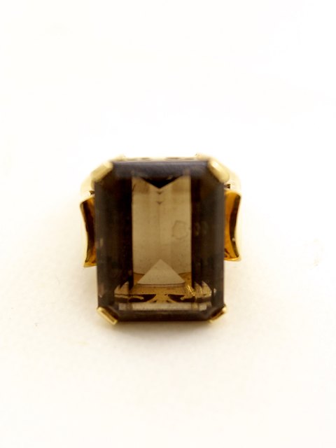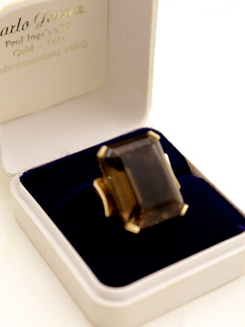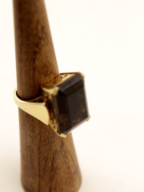 Guldsmed Kjeld Larsen Rønnede 14 karat guldring størrelse 54 Ø 1,75 cm. med røgkvarts 2 x 1,5 cm. Nr. 265530