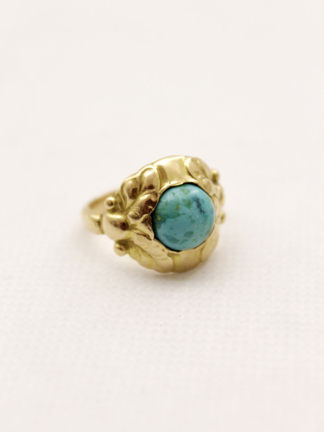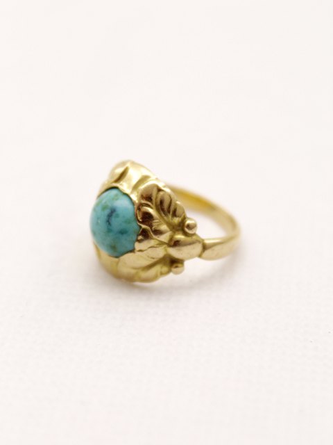18 karat Georg Jensen gold ring size 51-52 Ø 1.65 cm. dess. 111B with turquoise No. 267915