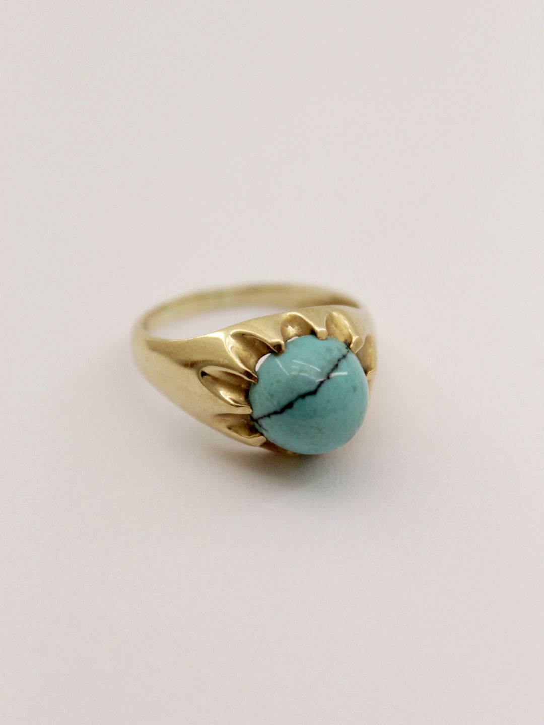 Guldsmed K Jacobsen guldsmedie København 14 karat guldring størrelse 54-55 Ø 1,75 cm. med turkis Nr. 284868