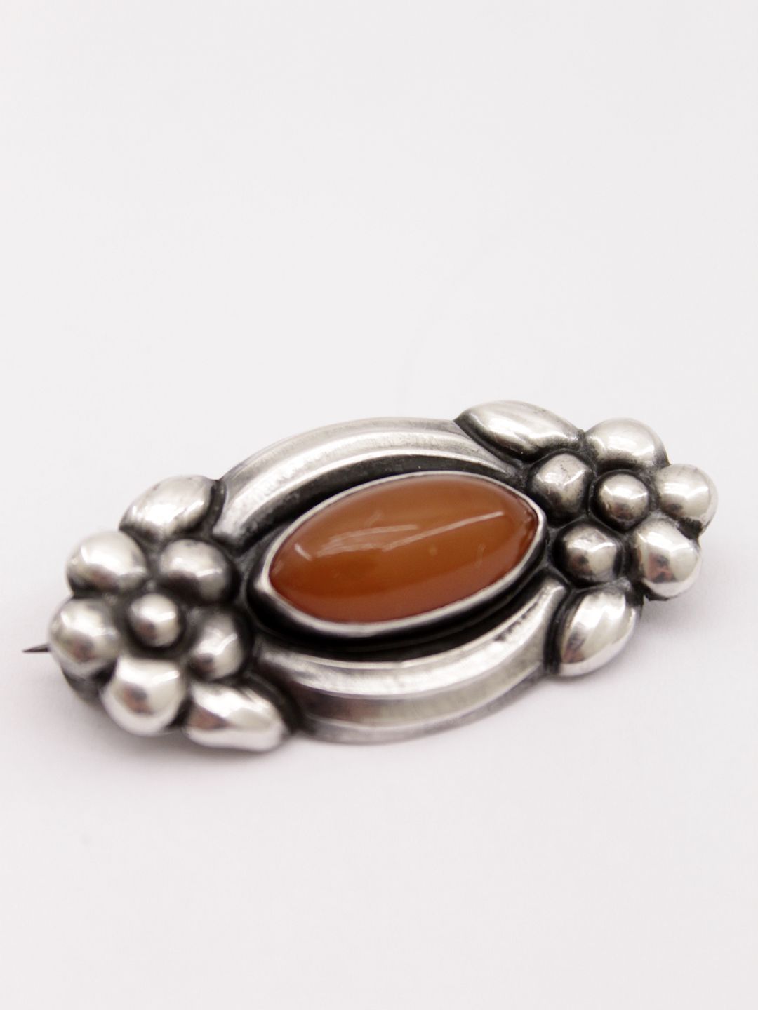 830 silver Art Nouveau brooch 2 x 4.1 cm. with amber No. 285866