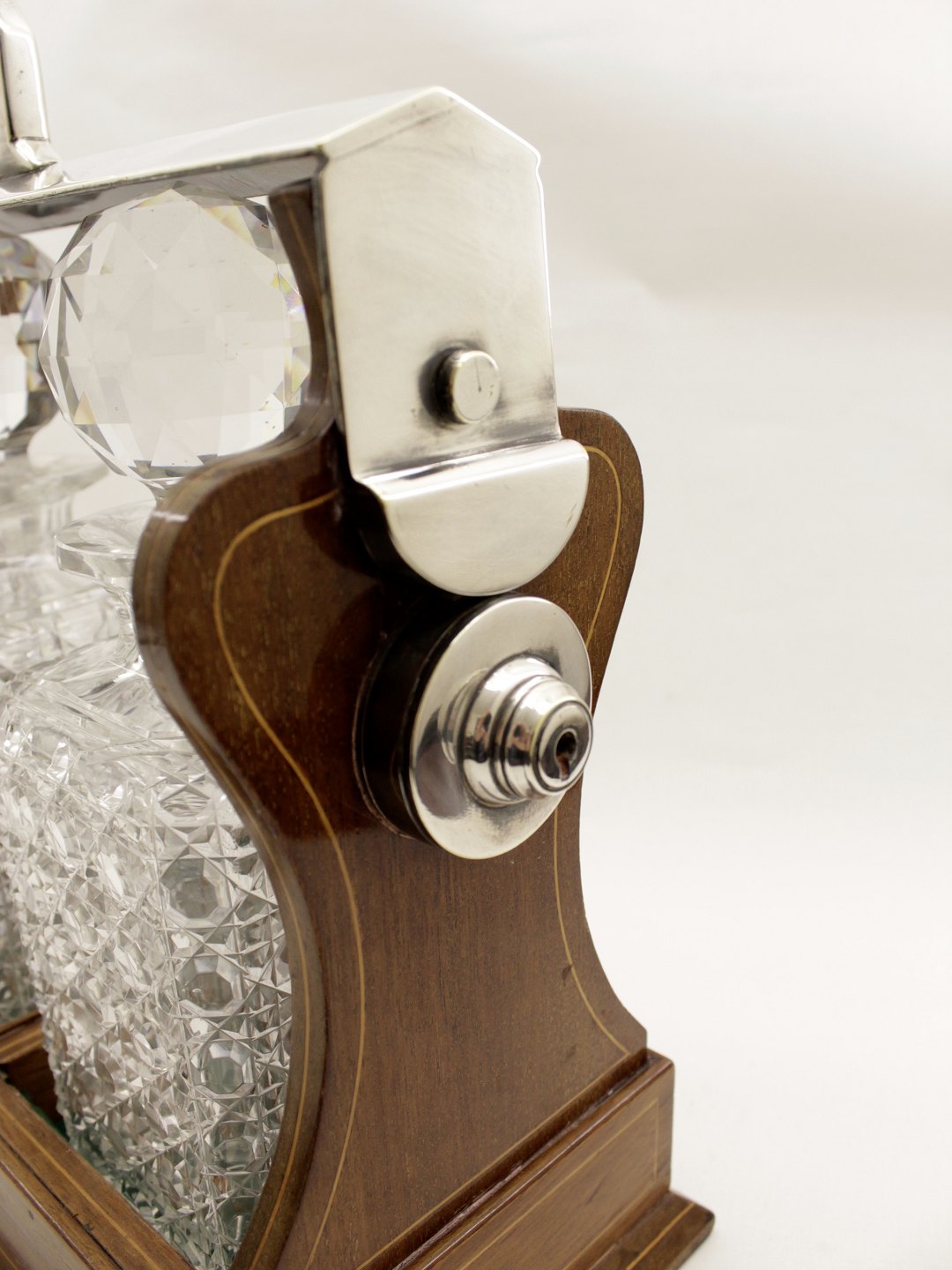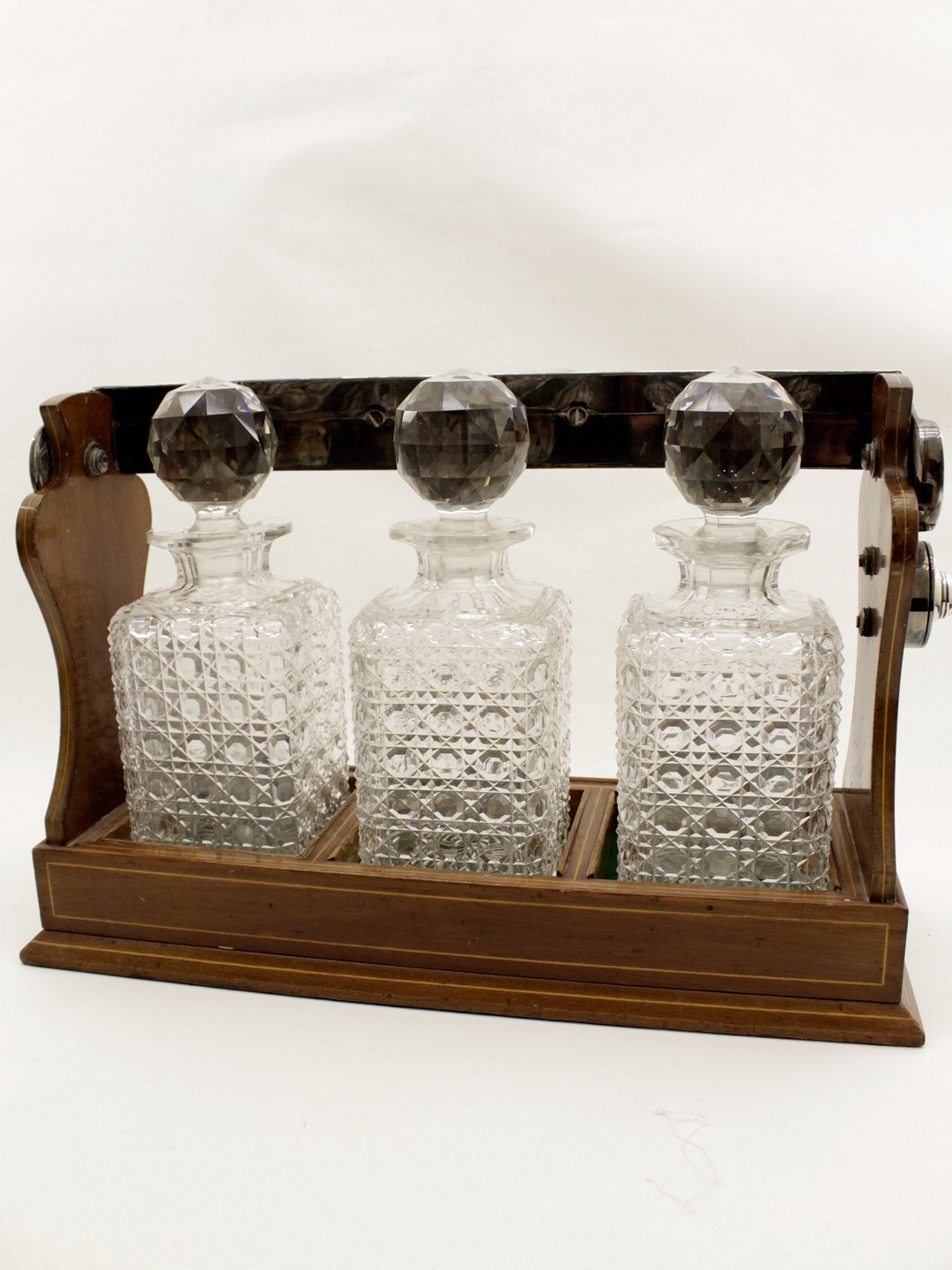 Engelsk 1800-tals tantalus med 3 karafler i poleret kasse små afslag i bunden af karafler Nr. 288204