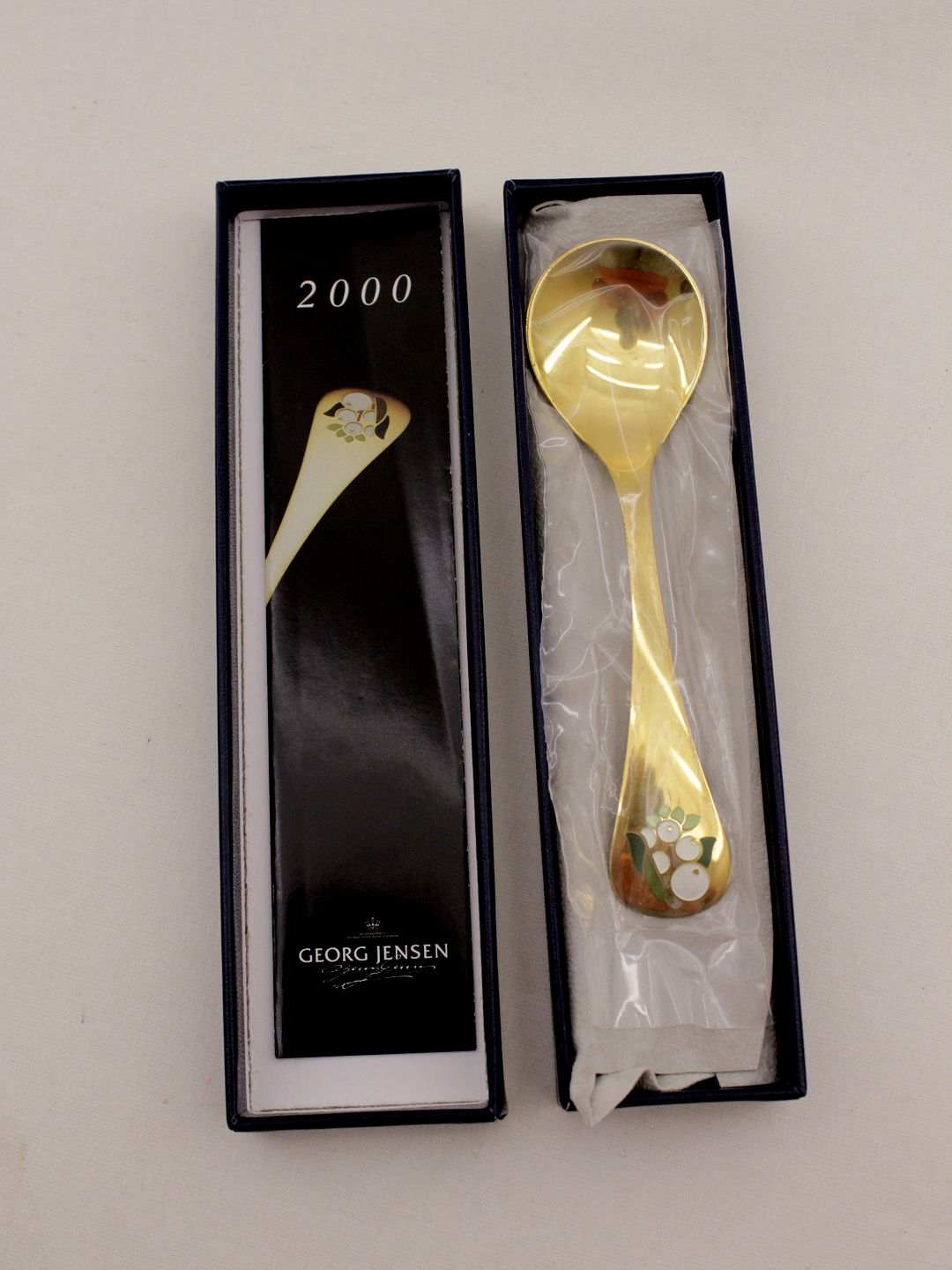 Georg Jensen årsske 2000 "Snebær" forgyldt sterling sølv i uåbnet original emballage Nr. "96144