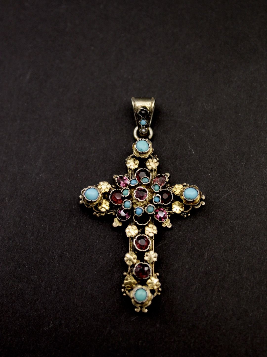 Silver cross with different stones 5.5 x 3.3 cm. 19th century. No. 300323