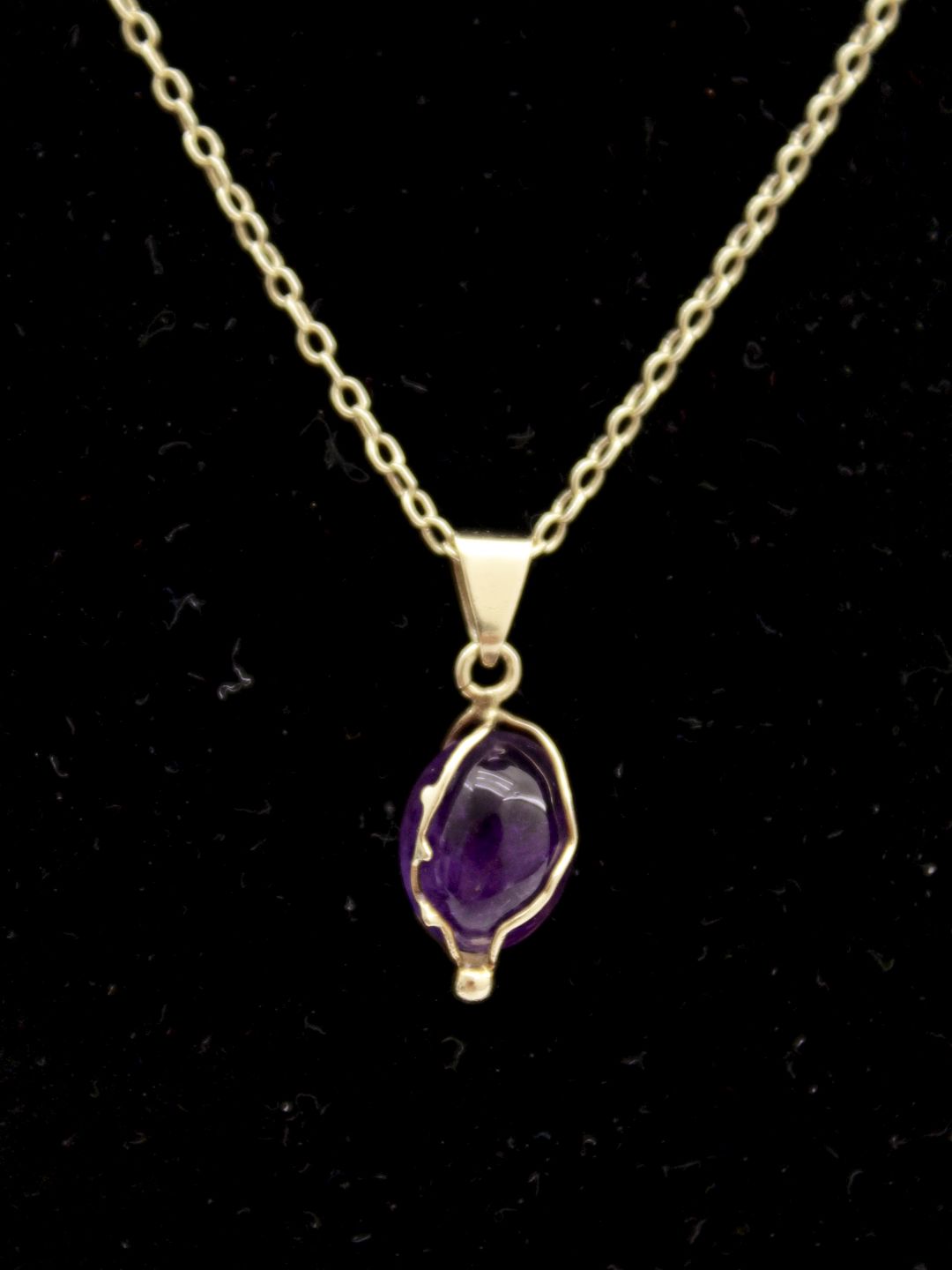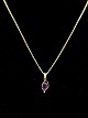 14karat guld halskæde L. 60 cm. og vedhæng med violet safir 0,8 x 1,6 cm. fremstillet af juveler Hans Jensen københavn Nr. 302334