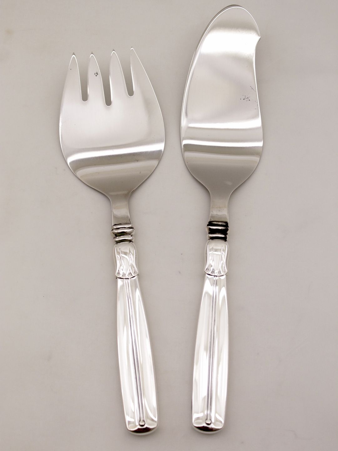 830 Silver and steel W & S S Lotus serving cutlery L. 23 and 21 cm. item No. 308728