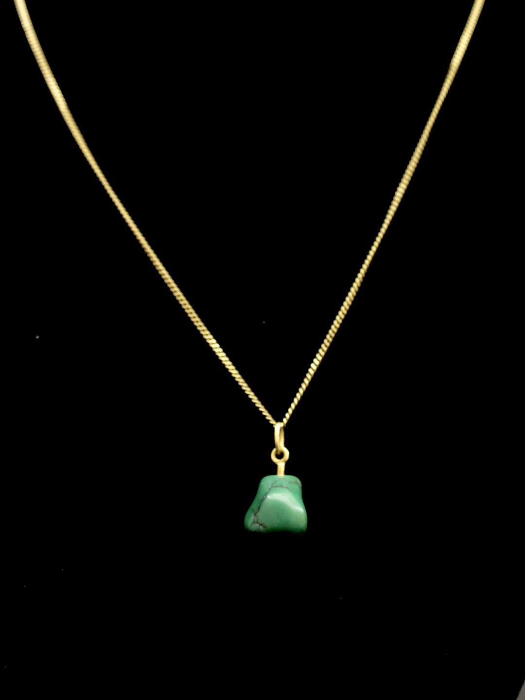 14 karat guld halskæde L. 52 cm. med turkis dia. 1,3 cm.