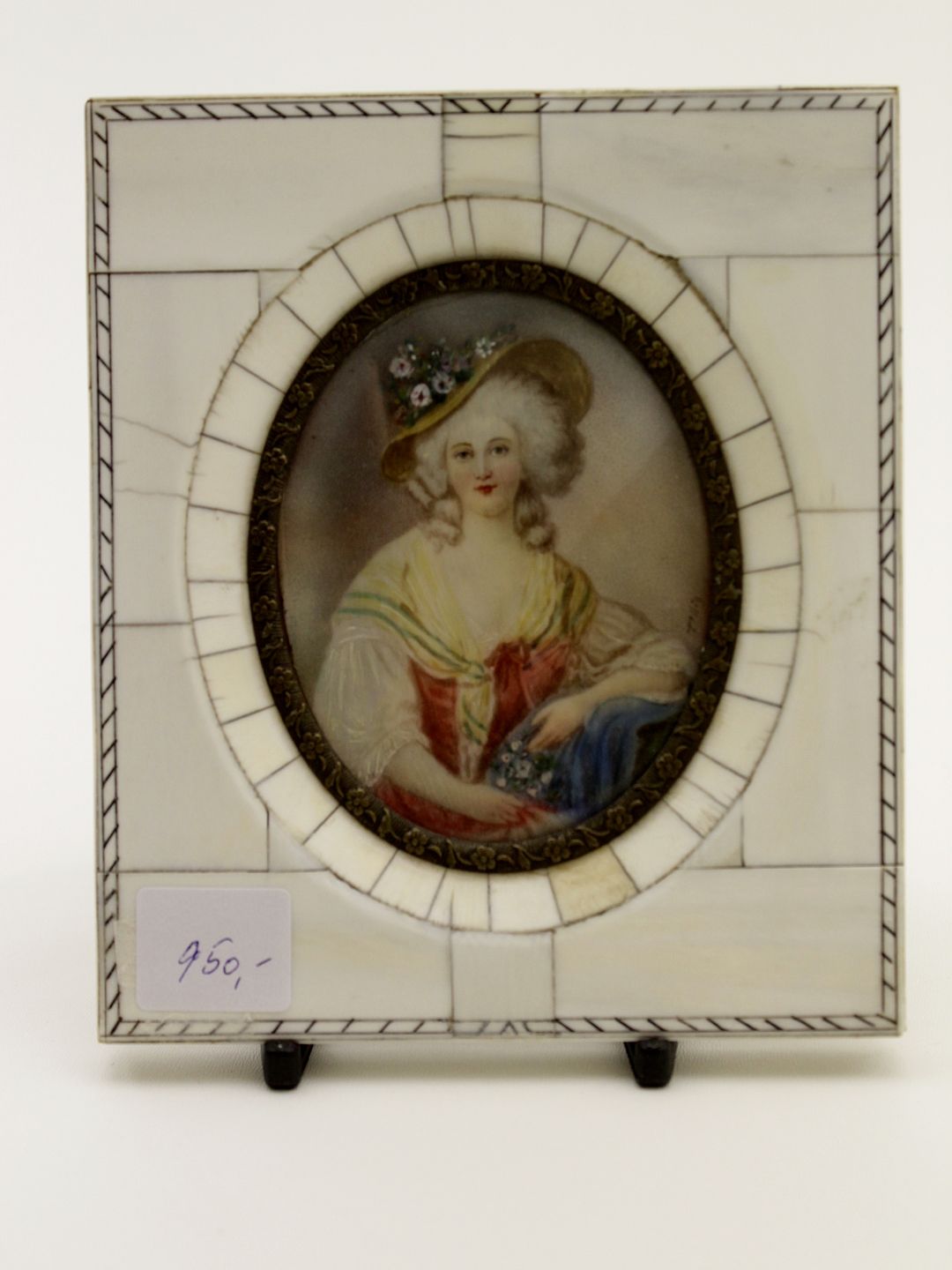 Miniature billed i elfenben ramme 12 x 14 cm. 18.årh.
