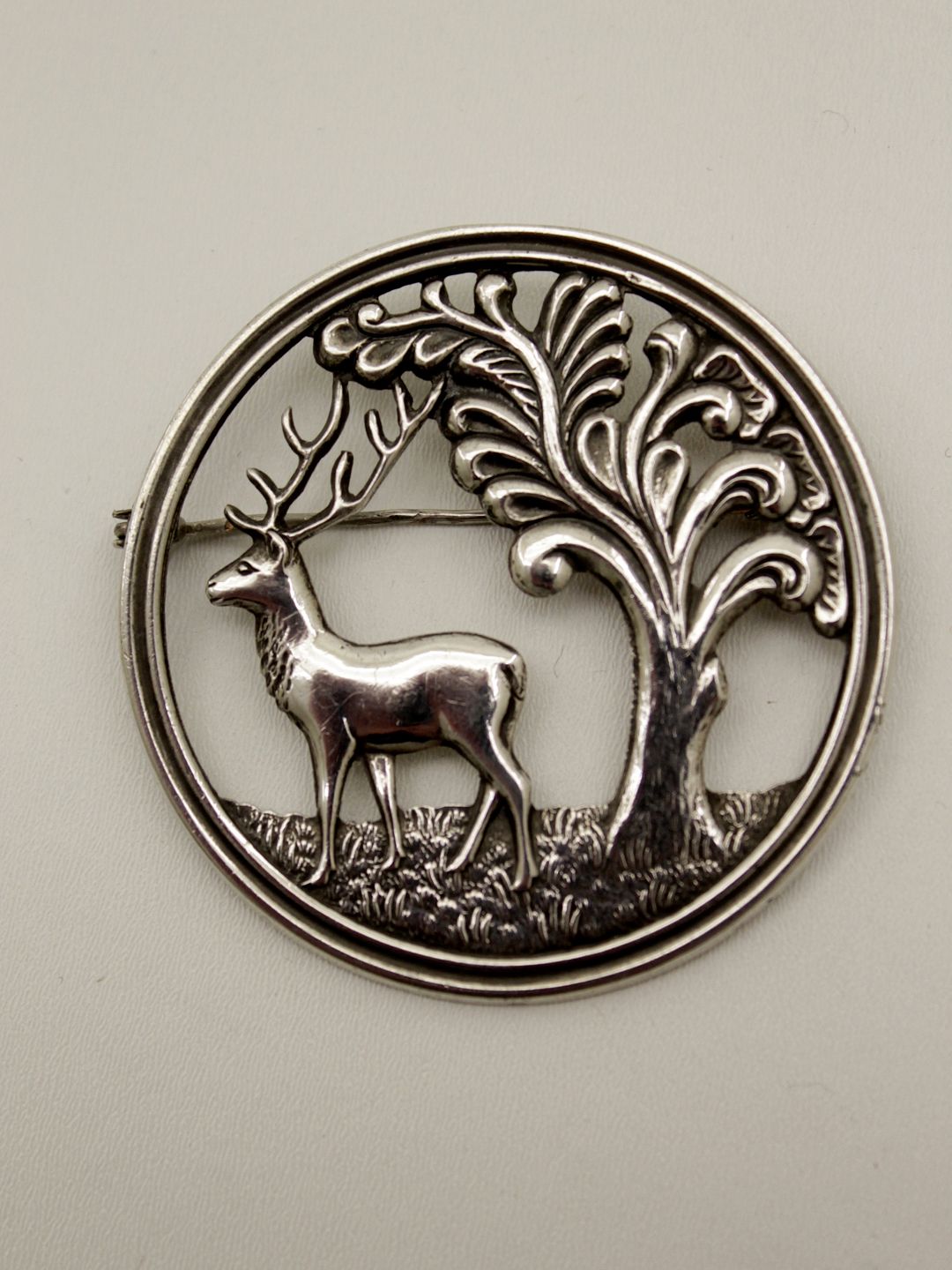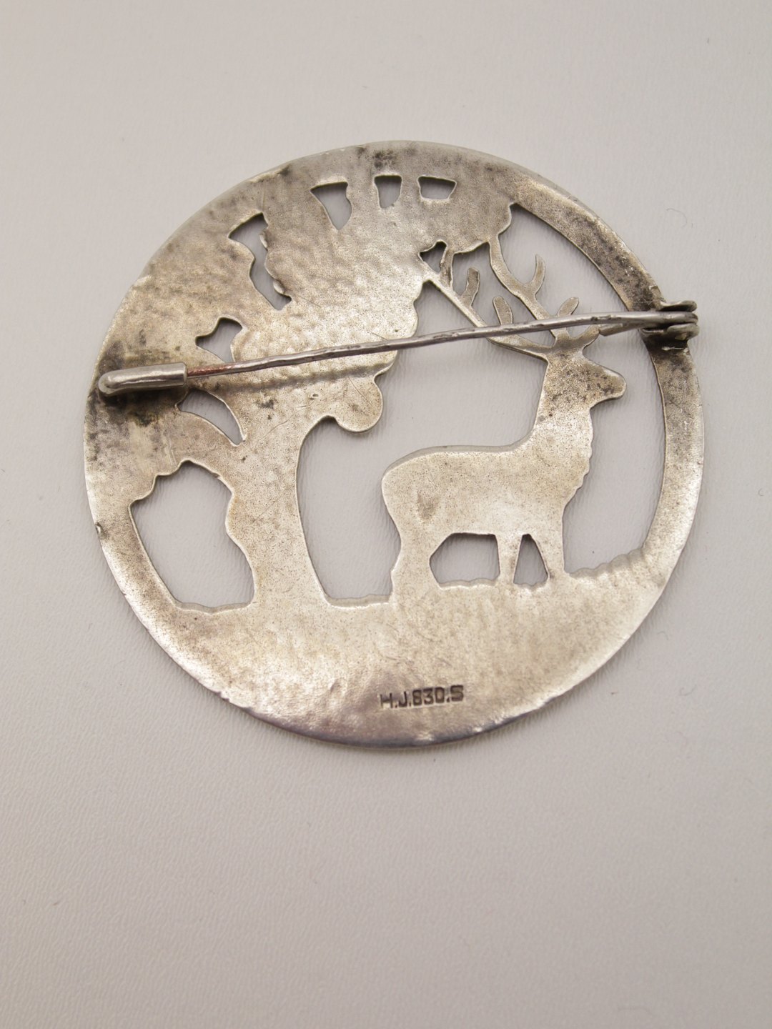 Sølvsmed Hans Jensen København art deco broche dia. 5,3 cm. med dyremotiv stemplet HJ 830s Nr. 314613
