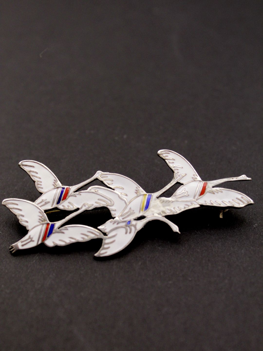 Erik Magnussen sterling silver broche med emalje L. 6 cm.