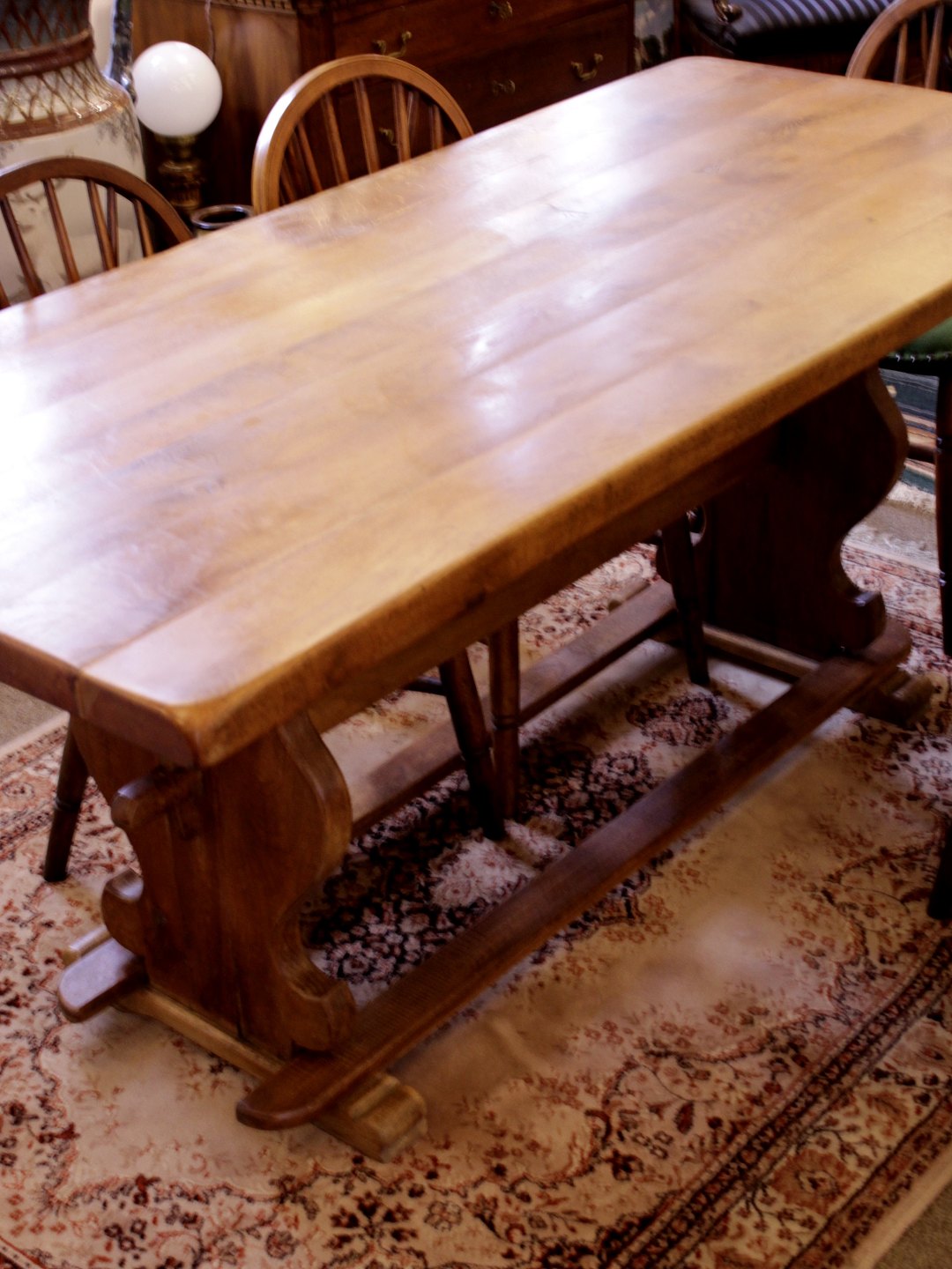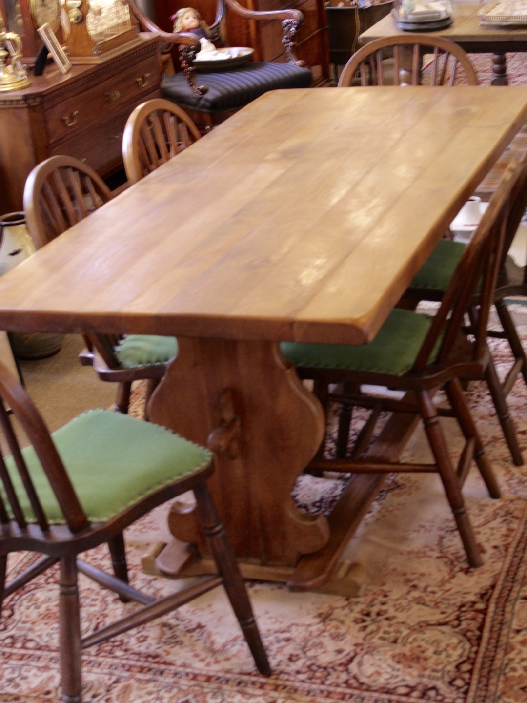 Almue oak long table 178 x 78 cm. with 6 pub chairs no. 315835