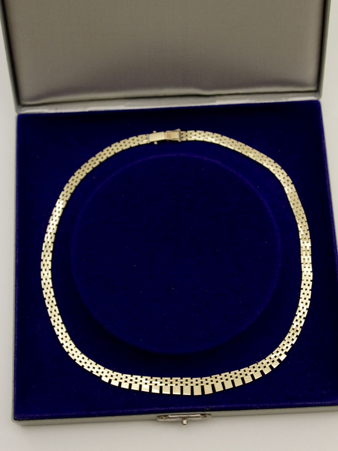 14ct gold necklace 42.5 cm. B. 0.5-0.9 cm. stamped Aur for goldsmith E Lindholm Copenhagen Nr. 320663