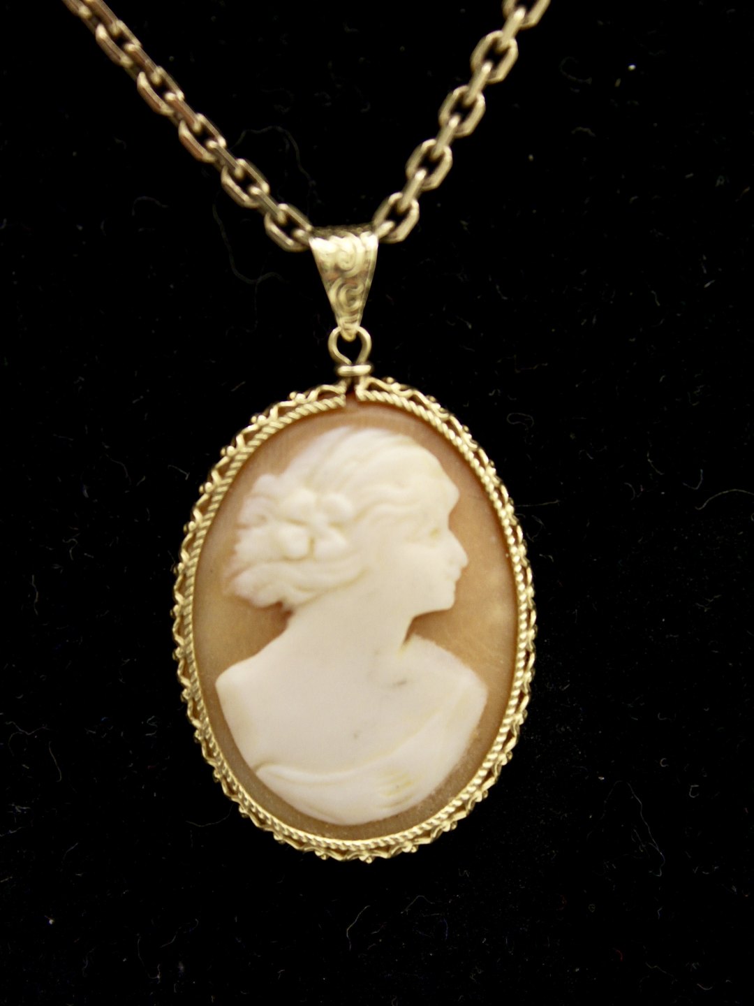 Forgyldt sterling sølv halskæde 40 cm. med came vedhæng 2,8 x 2 cm. Nr. 330108