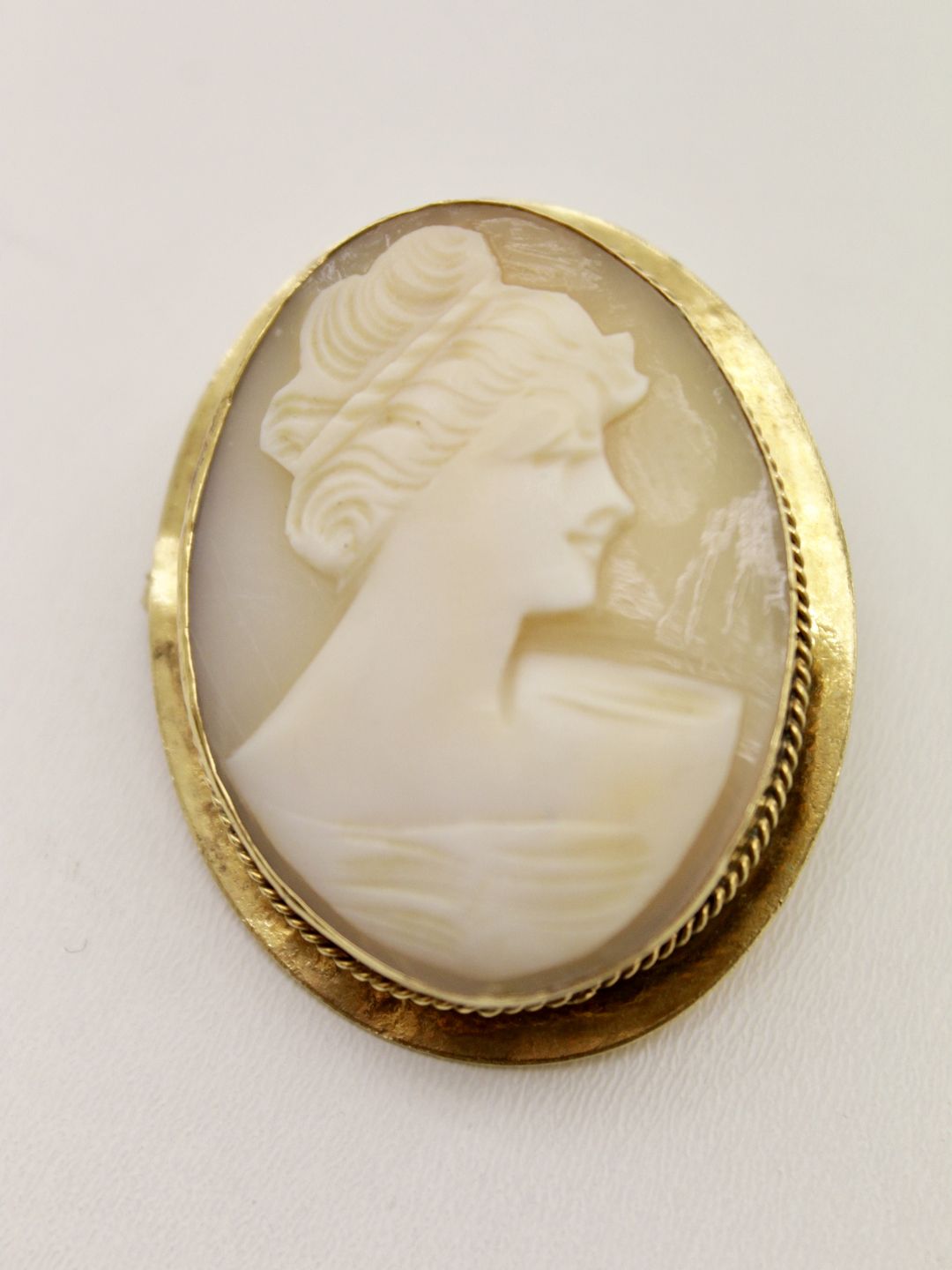 Nice came brooch in gold plated 3.9 x 3.2 cm. No. 334242