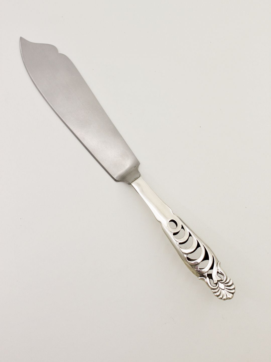 Lagkage kniv tretårnet sølv og stål L. 26,5 cm. Nr. 334381