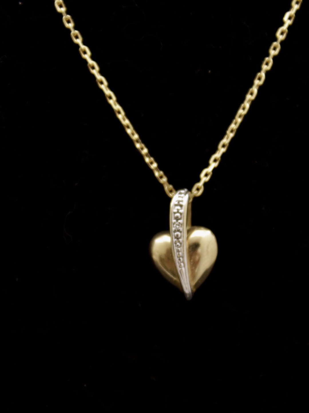 14 karat halskæde L. 38,5 cm. og hjerte vedhæng 1,6 x 1 cm. Nr. 338457